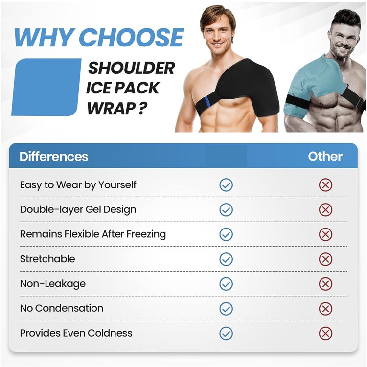 - Upgraded Gel Technology for Maximum Comfort: Made from a soft, solid-state gel, this shoulder ice pack wrap remains flexible and soft even after freezing. It conforms to the shoulder contours for a snug fit, offering better comfort than traditional gel packs. Ideal for ice pack for shoulder rotator cuff injuries, surgery recovery, and general pain relief.
