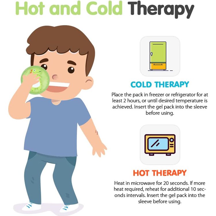 HOT & COLD THERAPY : Freezing in the freezer for at least 1 hour. Heated the ice packs in the microwave for 5 seconds. Check the temperature is warm enough. If not, adjust the placement and heat for another 5 seconds.