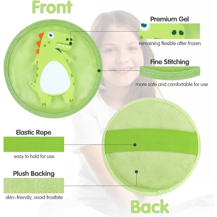NATURE SOOTHING KIDS FRIENDLY: This kids ice packs for boo boos are made of medical grade PVC and contain liquid gel, which can be stored in the refrigerator and used as daily first aid cold packs. These cute and handheld gel packs are a fun way to appease kids to feel better both physically and emotionally. They are flexible and comfortable to place on injury area. The cute dinosaur pattern are suitable for boys or girls.