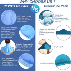 • Malleable Neck Ice Pack Wrap Gel: The neck shoulder ice pack filled with lower freezing point gel stays smooth and pliable when frozen. Shoulder gel ice pack reusable includes dividing lines to prevent the gel from gathering in one area, ensuring an even distribution of cooling therapy for maximum effectiveness